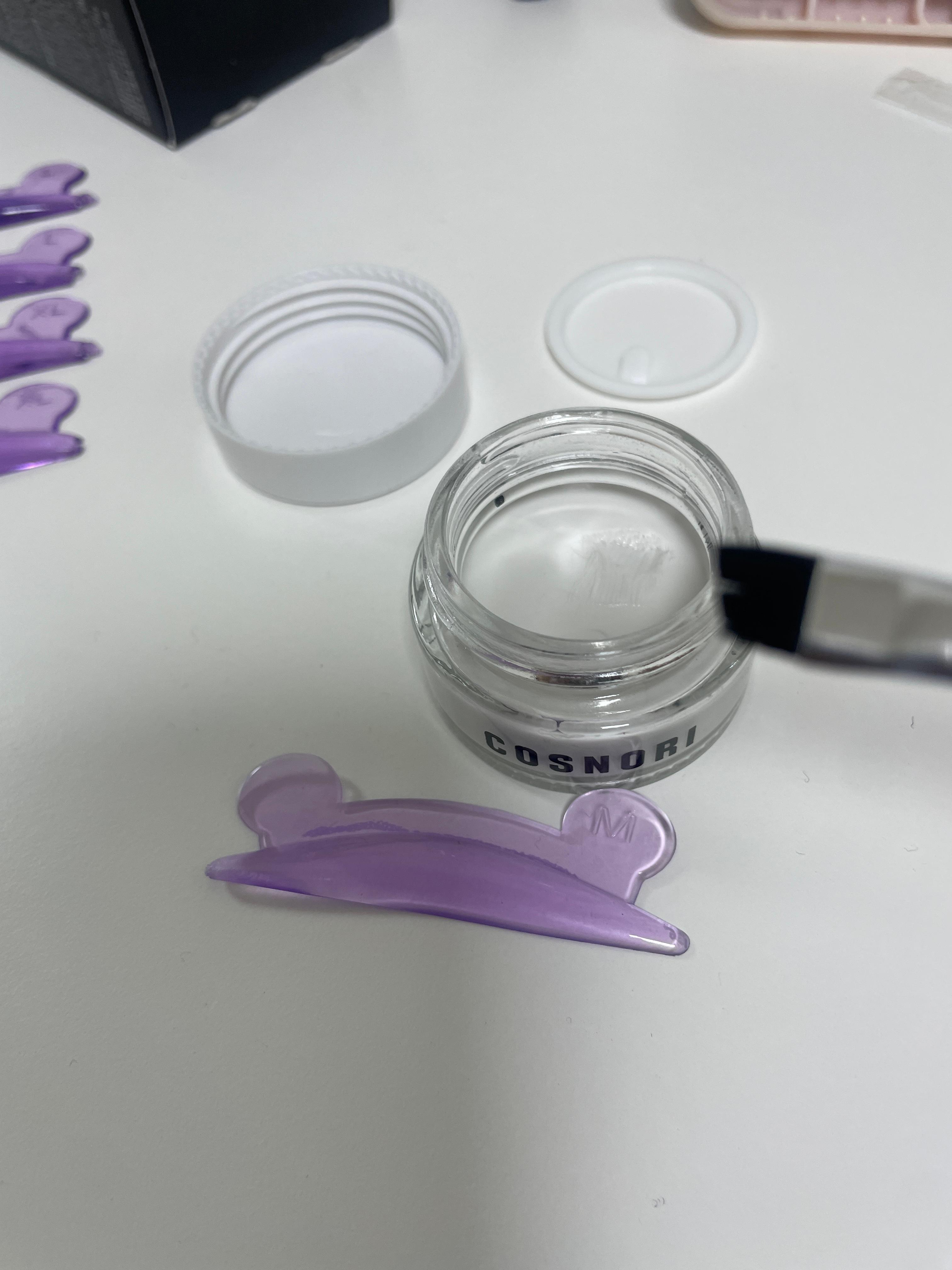 그리고 왁스로 속눈썹을 롯드에 고정한 후