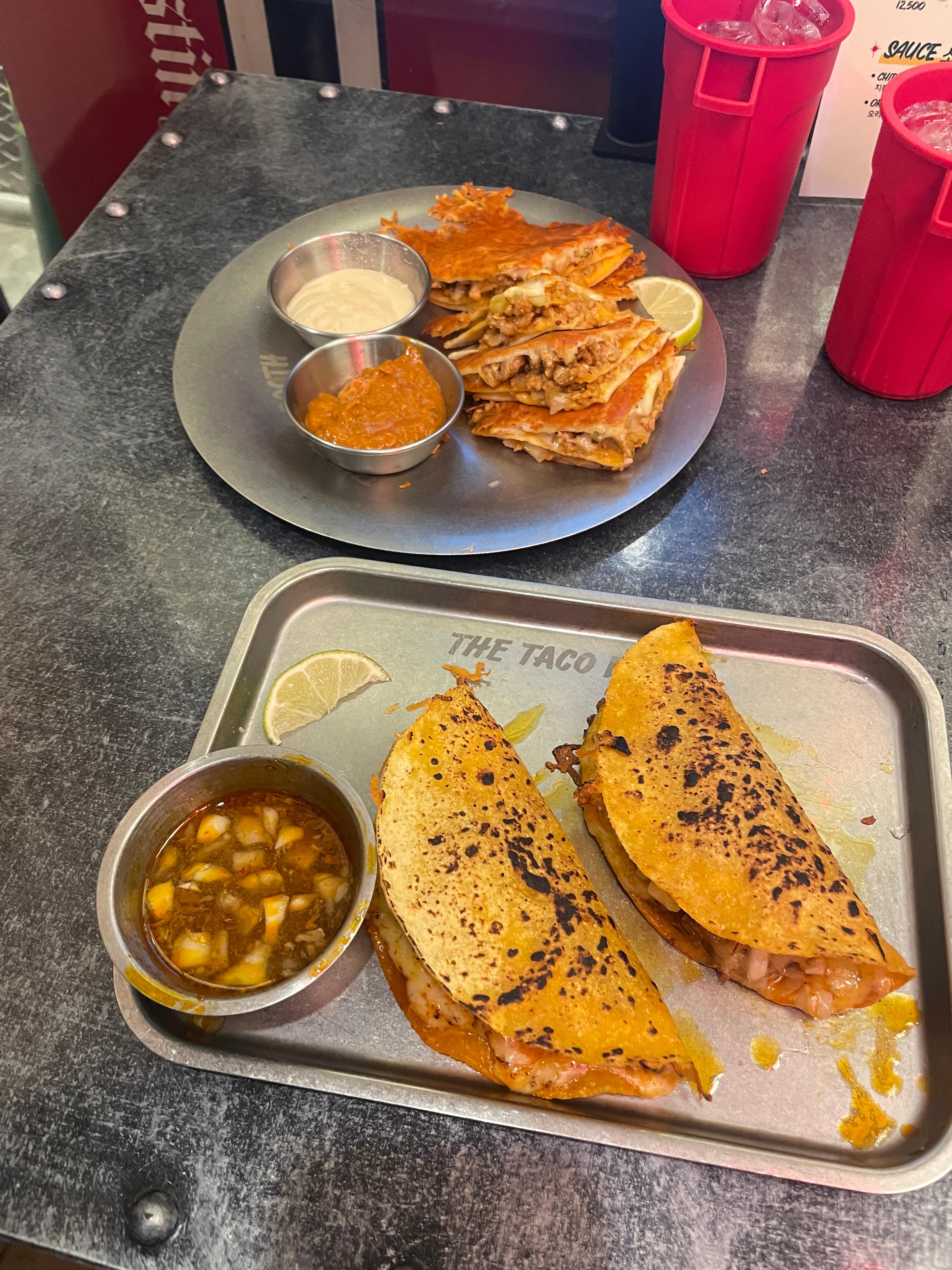 금방 나온 타코와 퀘사디아!!
